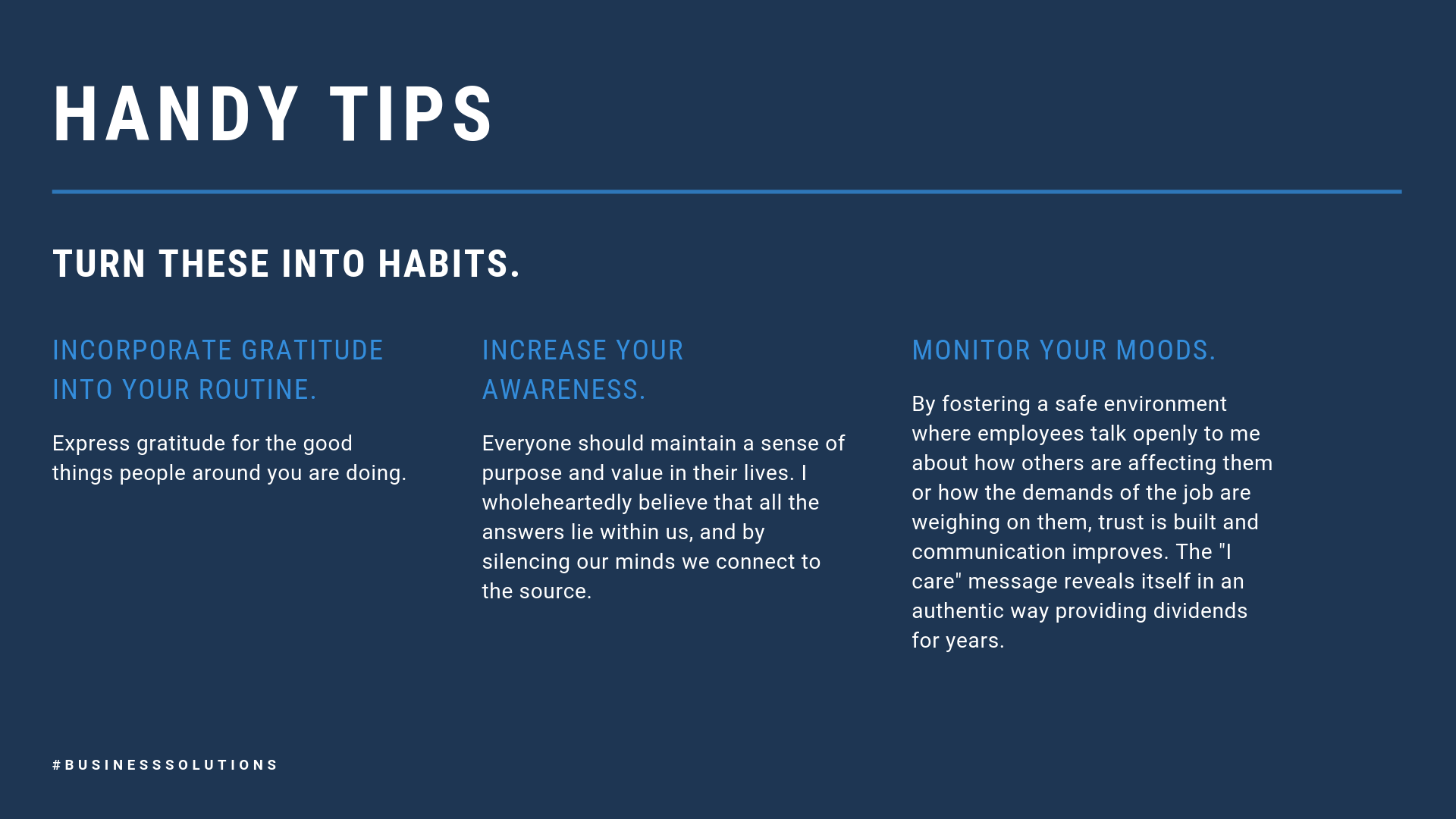 Mindfulness training helps leaders to measure and manage their lives as they’re living it. It helps them to take a second to process a thought before reacting. It may not seem like much but the ongoing application of this technique can actually help to reprogram the way we think.